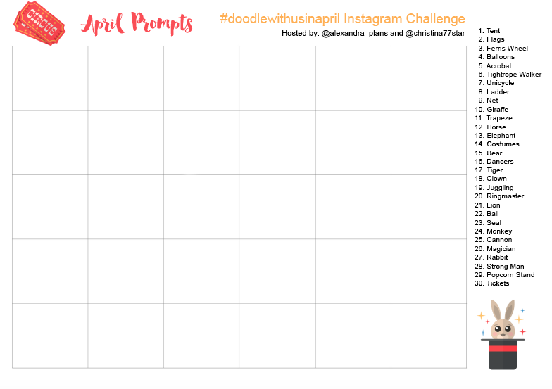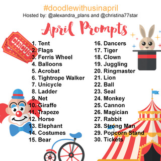 Get ready for our next Instagram challenge for the month of April. It’s the #doodlewithusinapril challenge created by me and Christina from @christina77star! The theme for April’s Prompts is ‘The Circus’.