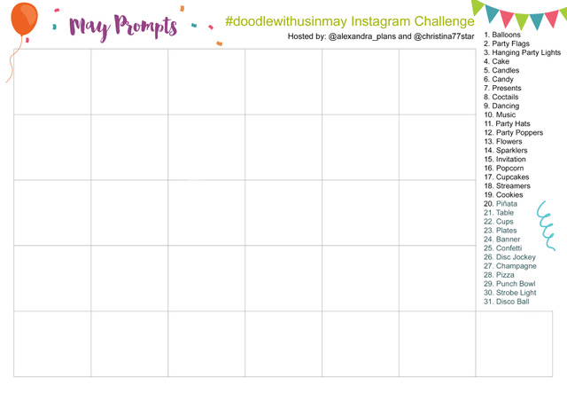 The theme of May’s prompts is ‘Party Time’, and I seriously can’t wait to start drawing!!! It’s going to be 31 days of doodles that will hopefully get you to be creative and have fun!