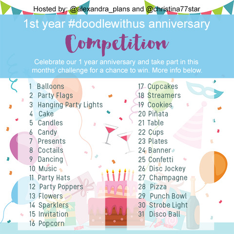 Christina (from @christina77star) and I are celebrating our 1 year anniversary for the #doodlewithus Instagram challenge and we’re inviting you to celebrate with us and take part in our #doodlewithus challenge for May. This past year has been incredible and we’d like to thank everyone who took part in the monthly challenges.